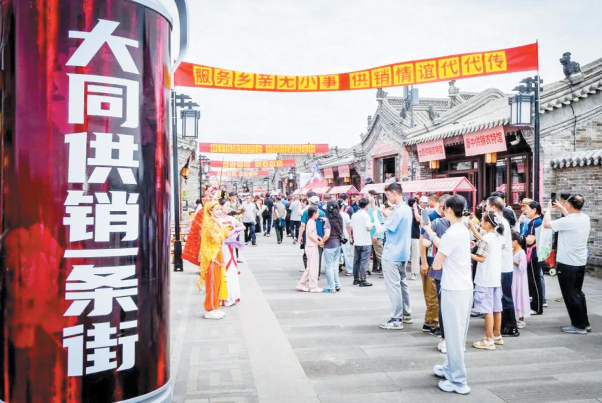 昔日“煤都”大同,如今已成功转型为新兴旅游城市,去年春节期间A级旅游景区累计接待游客达115.07万人次。大同市供销合作社把供销集市与假日经济进行有机融合,在人流量集中的古城内开设“供销一条街”,连续举办富有地域特色的供销大集系列活动,集中展示销售全省各地及兄弟省份的优质特色农产品,实现了在假日经济中唱主角、打头阵,在农商文旅体深度融合中促进了产业振兴,提振了消费信心。